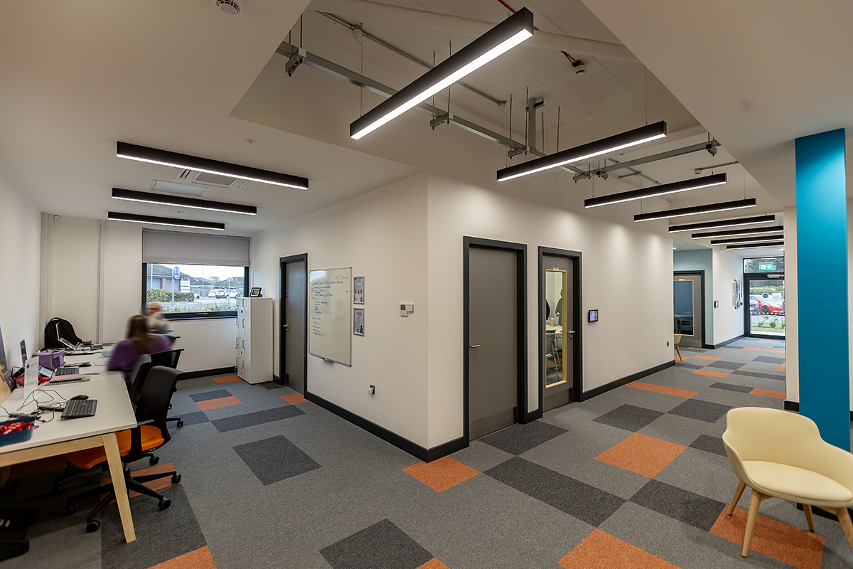 The nature of the new Campus building required a versatile lighting system, capable of adapting to a wide range of uses and environments within the space. From general circulation areas to more focused zones such as meeting rooms, each space had distinct requirements for both functionality and comfort.