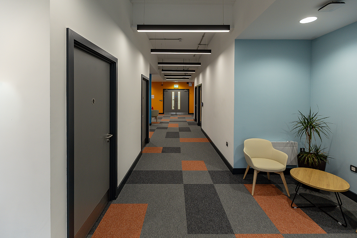 Dextra’s ability to provide a flexible, end-to-end solution was key to meeting the project’s varied demands. Within the meeting areas, Dextra installed its Reacta control system, enabling multiple lighting scene settings tailored to the needs of the users. This intelligent control system allows lighting levels to be adjusted according to activity, ensuring a dynamic and comfortable environment at all times.