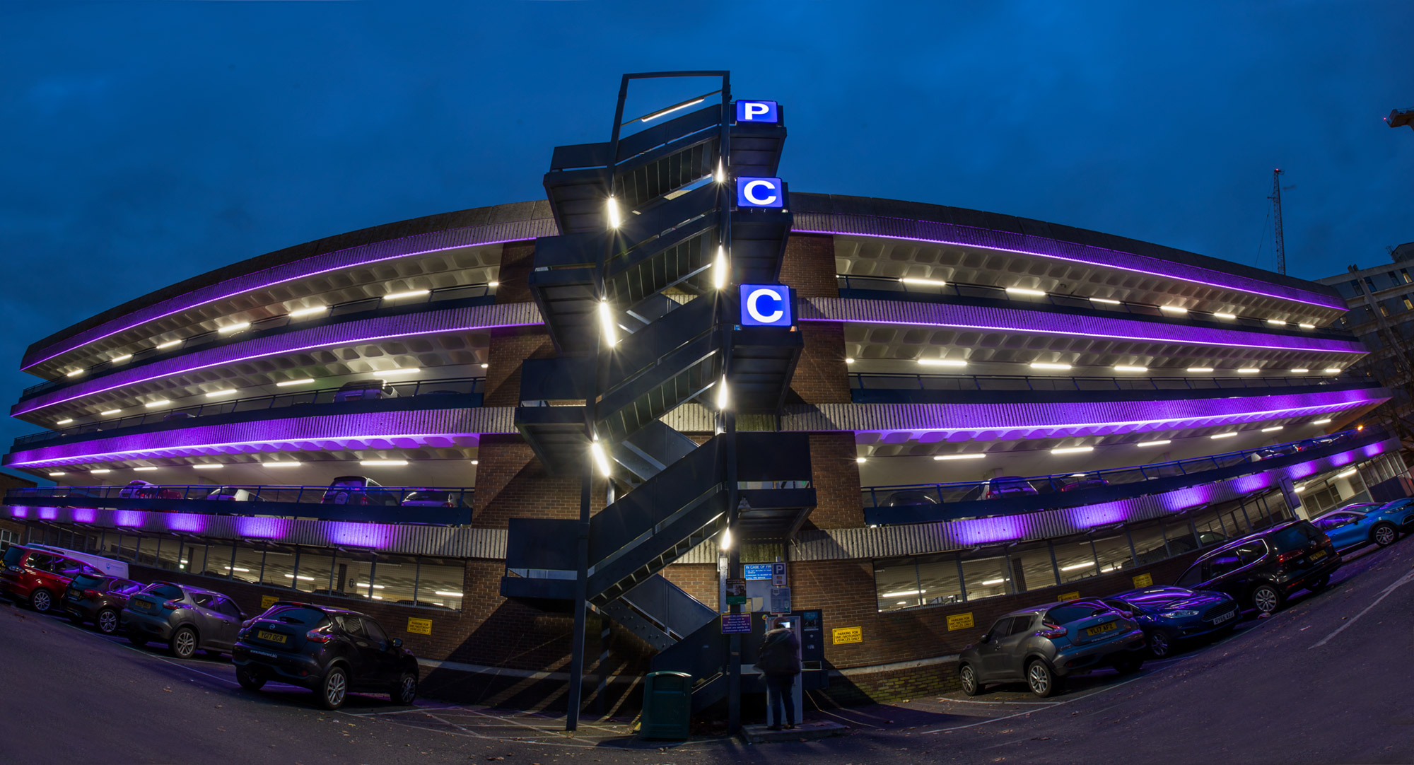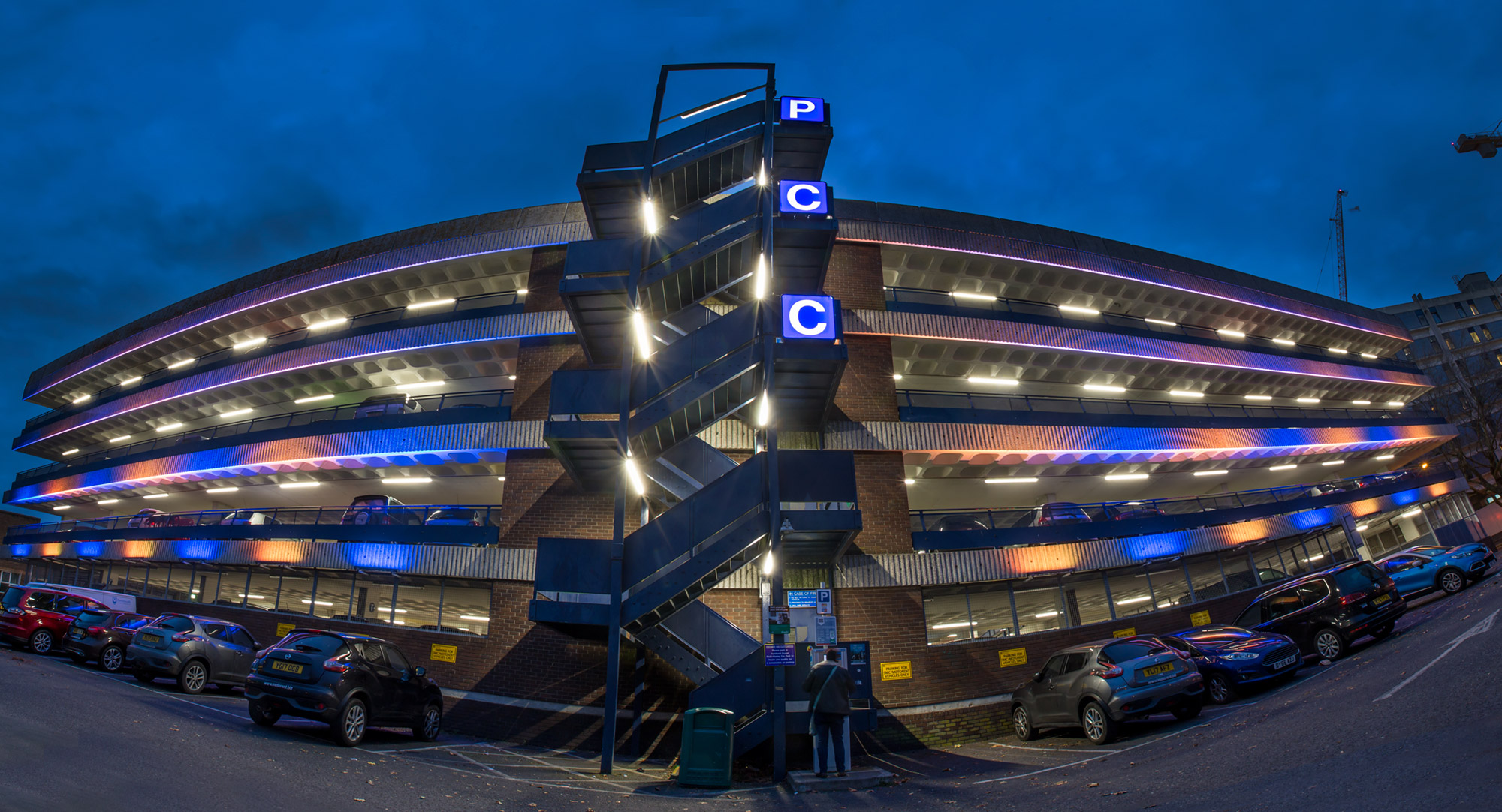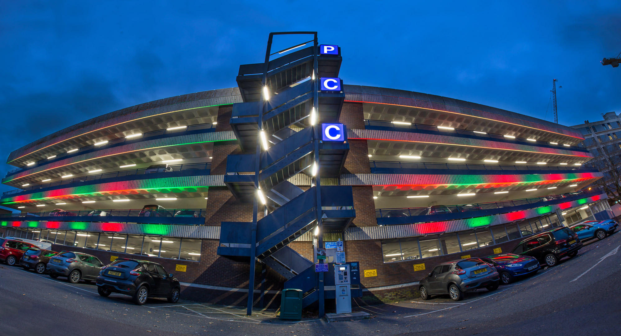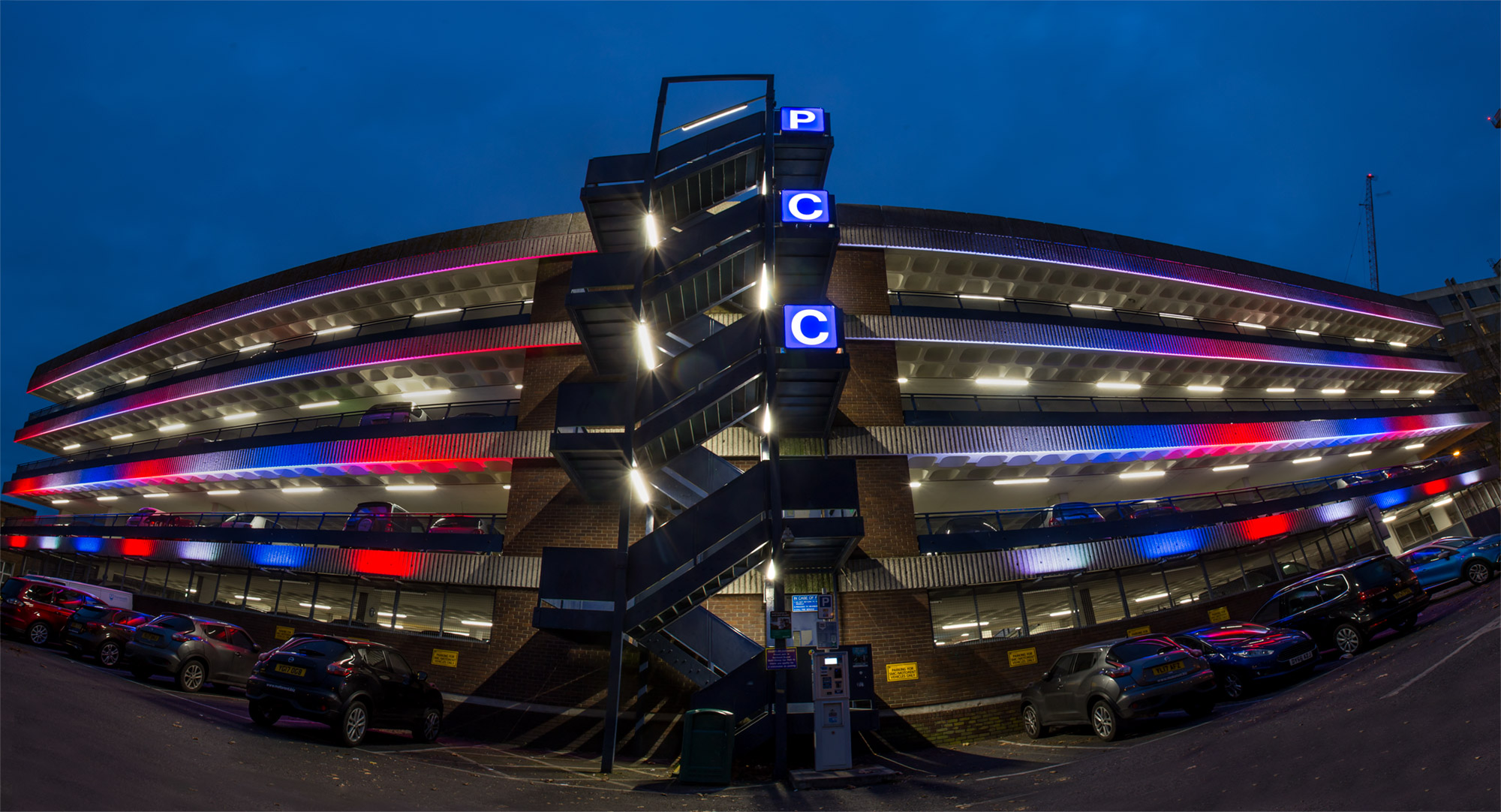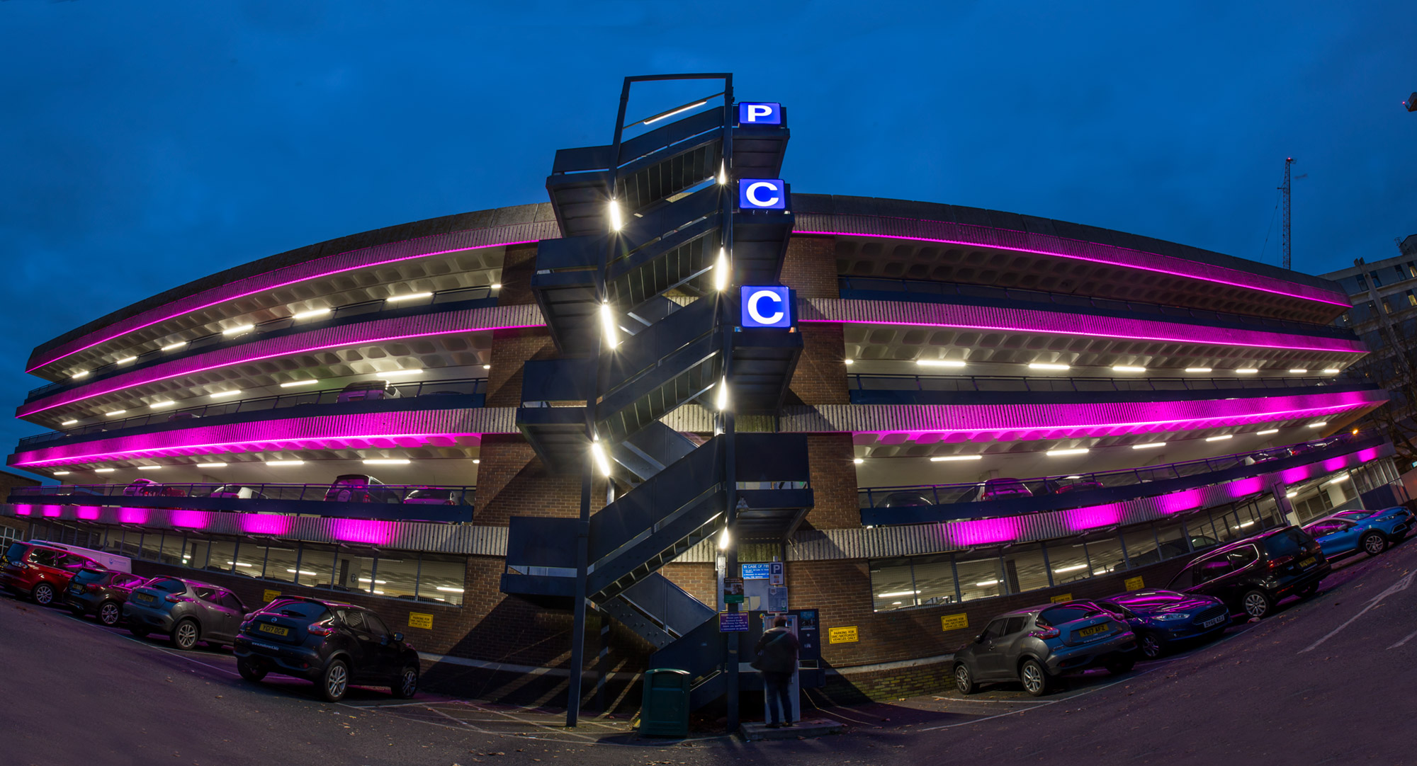 As part of its ongoing plans to “create an attractive public realm” Portsmouth City Council (PCC) approached Dextra Group to design, manufacture and deliver an exterior lighting installation for a key multi-storey car park in the Guildhall area. The council’s aim was to use lighting creatively to help define a “sense of place” and “contribute to the character and identity of the city centre”.