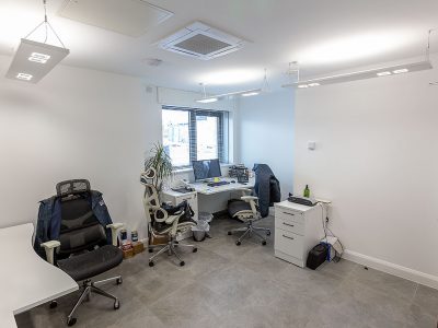 To offer an attractive look but also achieve guideline compliance, for use over the computer screens in the reception area, Elisian luminaires were installed. This is the latest addition to Dextra’s comprehensive range of LED downlights and offers an alternative to the traditional downlight design with a lit polo ring with central cover allowing for easy inclusion of sensor and emergency variants.