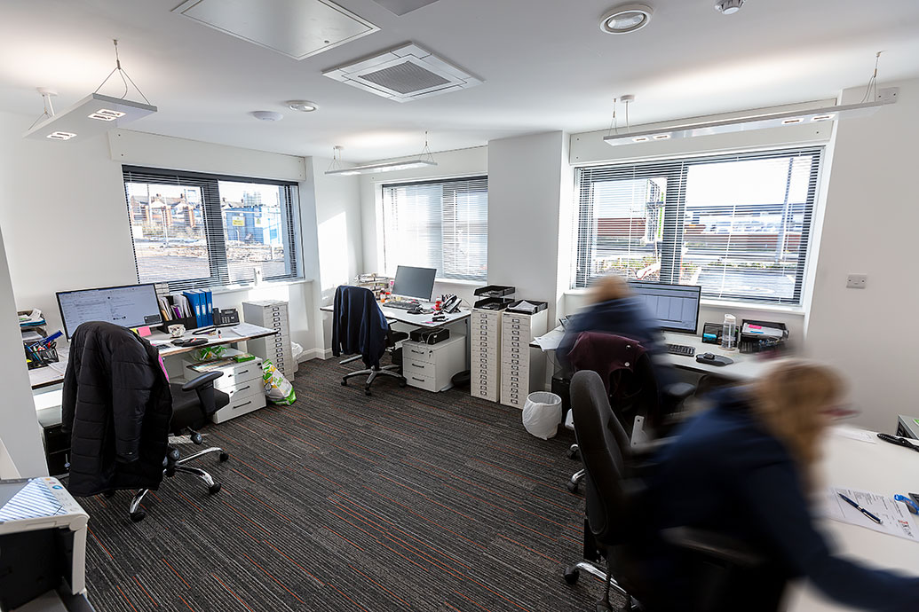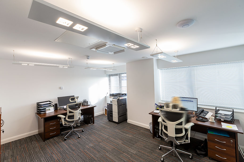 The Rubix Suspended Bi-Directional were used to great effect in the administration, sales, accounts and directors’ offices, some with dimming technology.