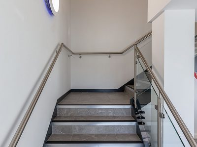 In the stairwell of the building, Discalo LEDs, with effective blue halo, were used to help enhance the visual appearance of the area. The Discalo LED is a highly efficient and low maintenance luminaire.