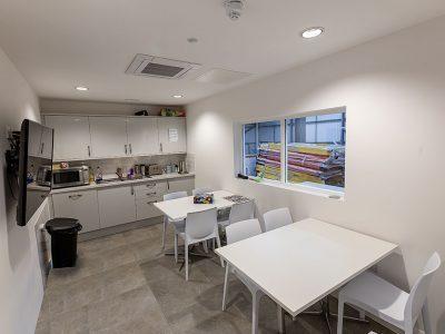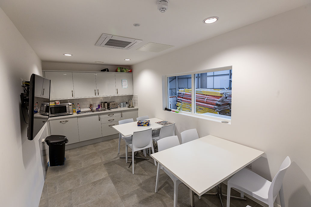 In the staff kitchen, toilets and circulation areas, Protec LEDs with white bezel and while halo attachment were used to create an attractive and functional effect. These were supplied with IP44 covers for the toilet areas. With impressive energy cost savings (with short capital cost payback periods) over its fluorescent equivalents, it is an ideal option to tie in with environmental management policies, requiring a commitment to energy reduction.