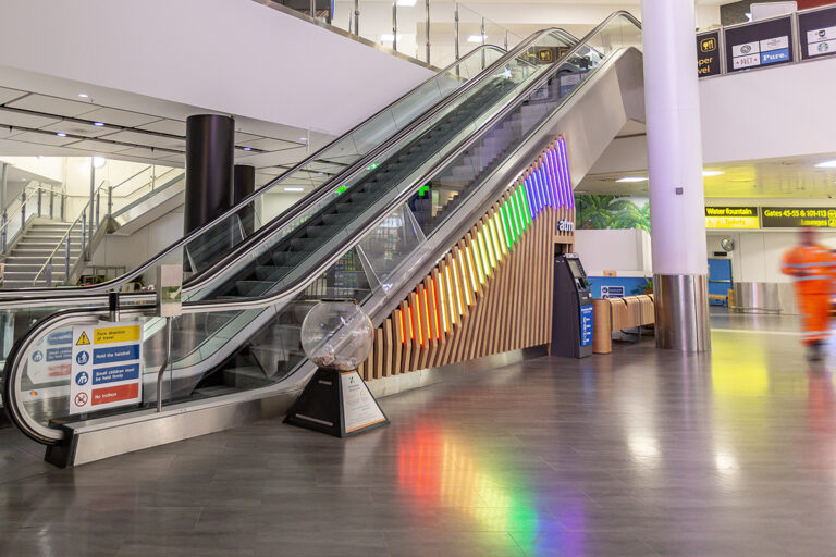 The final scheme includes a series of pre-programmed scenes chosen in collaboration with London Gatwick, such as London Gatwick blue, Pride-inspired sequences, Hanukkah candle effects, St Patrick’s green and red/gold for Chinese New Year. As with many of LEDextra’s recent projects, the system was commissioned by Darren Parlby of Oakcroft Technical. LEDextra specified an innovative DMX modular control system, with a wall-mounted user interface, allowing London Gatwick staff to adjust scenes easily, offering flexibility for events and seasonal themes.