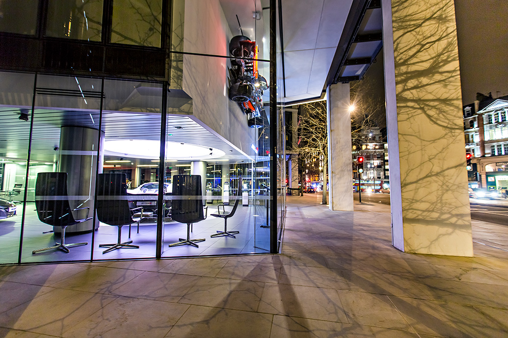 Colour plays an important role in bringing the showroom and the cars on display to life. High-performance LED colour projectors such as the Philips Color Kinetics ColorBlast Powercore, can be used to create a range of scenographic lighting effects, combining wall-washing, grazing, floodlighting, and spotlighting to deliver excitement with each display. Capable of producing saturated, full-colour light outputs in excess of 1400 lumens at a projection range of over 60m, this product can be used for a wide range of indoor or exterior applications. The projector can also be adapted by Dextra to suit specific mounting requirements for either customised gantries, walls, ceilings, or floors.