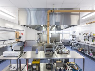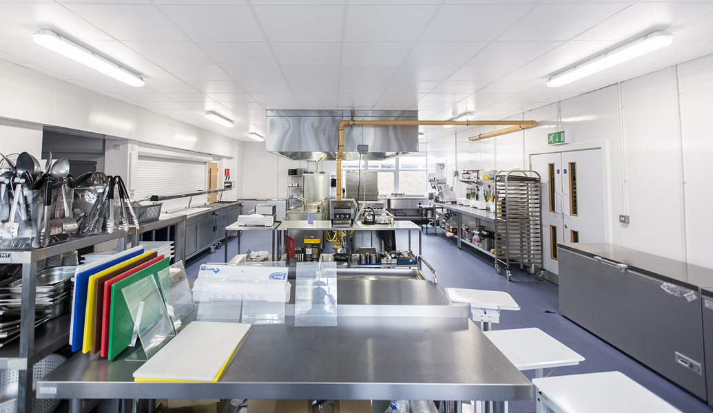 The versatile and robust Hydra LED was utilised to illuminate the academy’s kitchen and storage areas. Thanks to the benefits of LED, this luminaire can be offered in a wide range of lumen outputs with light output ratios in excess of 90%.