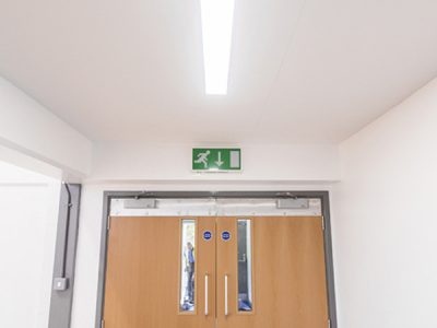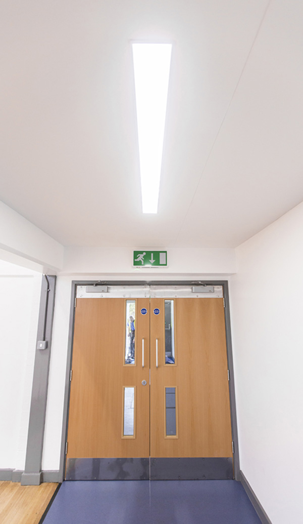 The robust and energy efficient Graduate LED was installed in the main corridor adjacent to the main assembly hall and a number of classrooms. The highly successful Graduate range has long been a prominent feature in lighting projects for schools, universities and health care facilities. Now relaunched in a LED variant, it offers the added benefits of excellent energy efficiency and low maintenance. The Graduate LED’s steel housing and robust design provide added protection against the rigours of busy school environments. Also manufactured with Dextra’s unique opal polycarbonate diffuser, the Graduate LED guarantees optimum light output ratio, whilst ensuring excellent diffusion of the LED source.