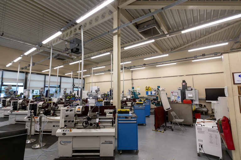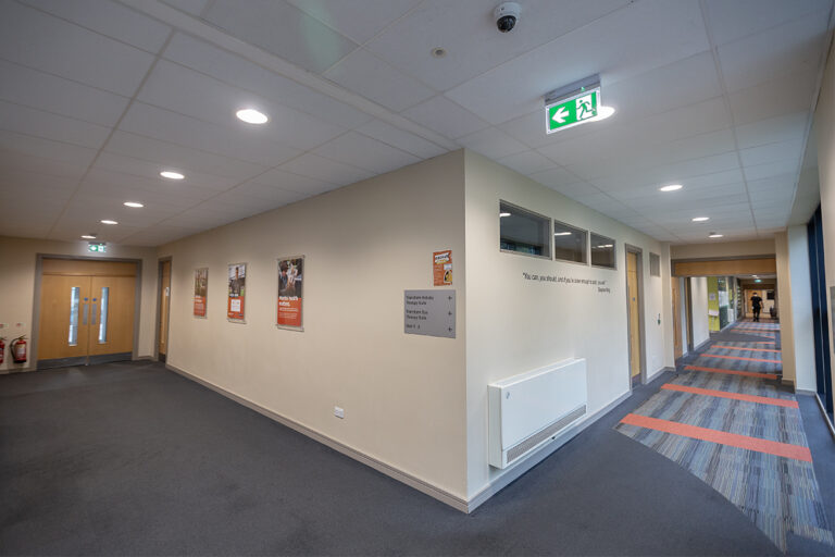 Dextra were able to offer the solutions due to its extensive product range and some bespoke solutions. The Main Campus consisted of numerous recessed modulars, down lighters and bidirectional suspended continuous run luminaires. Aesthetics were enhanced in the auditorium and board room areas. The Gordon Banks Sports Centre had multiple facilities where Dextra were able to specify alternative lighting to achieve the energy and carbon reductions and improve aesthetics for both guests and employees. The Skills and Technology Centre comprises of numerous well-maintained workshop and study spaces where Dextra had to ensure that excellent light levels were maintained along with the specification of suitable luminaires for an ingress environment.