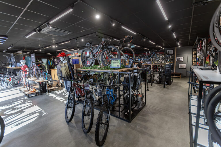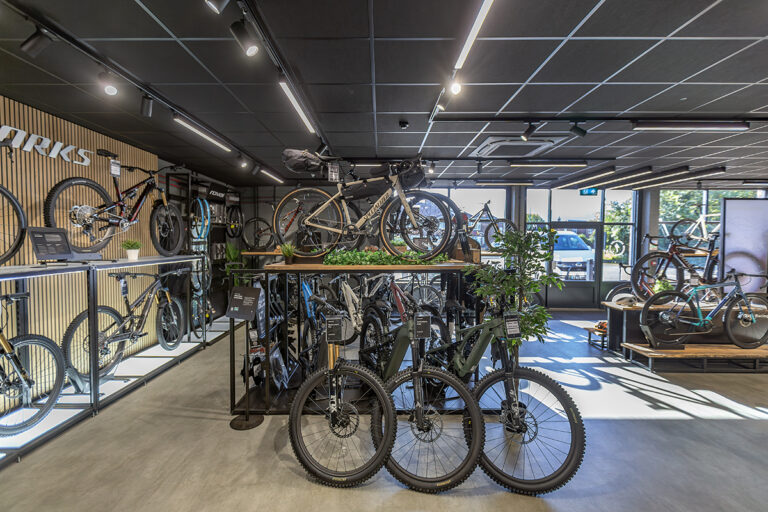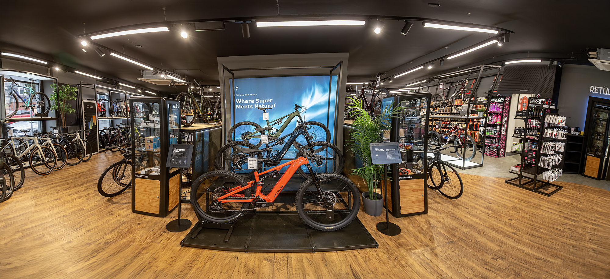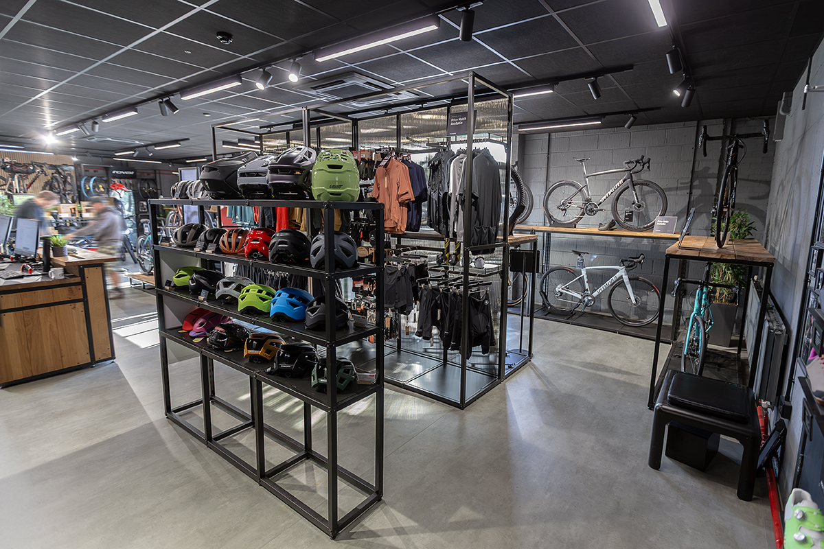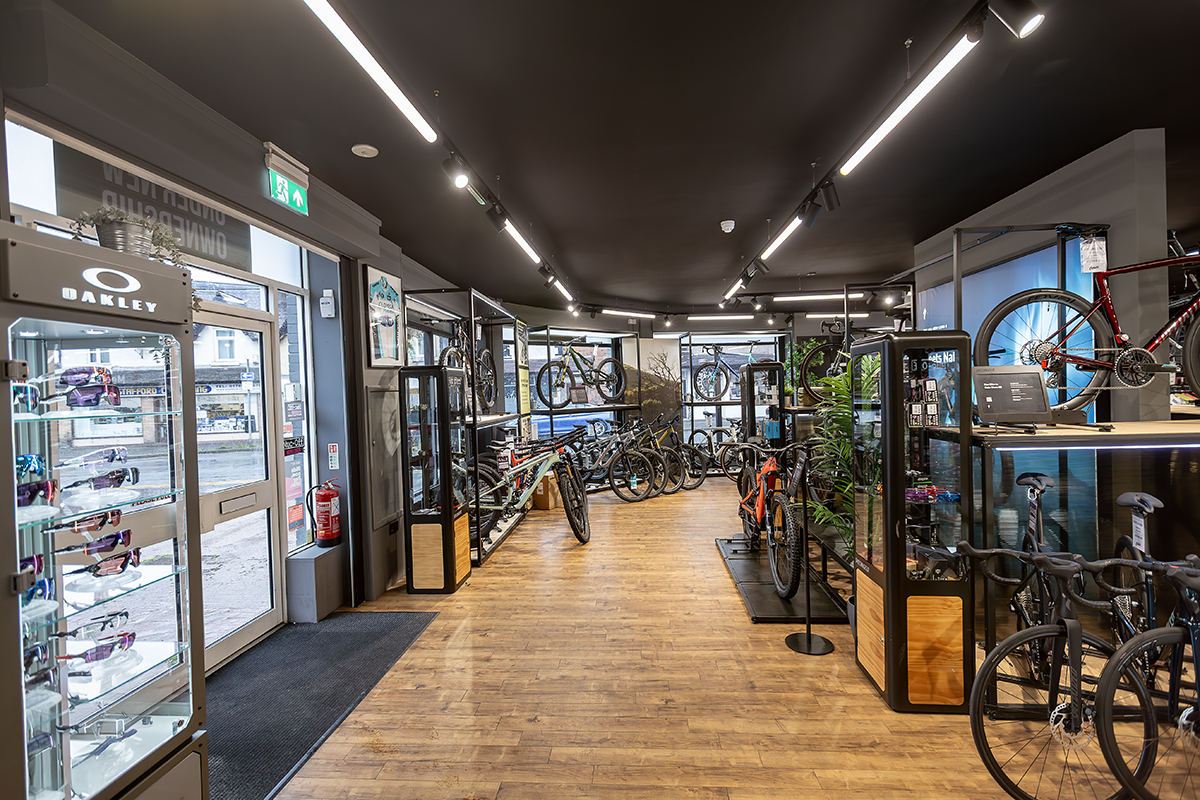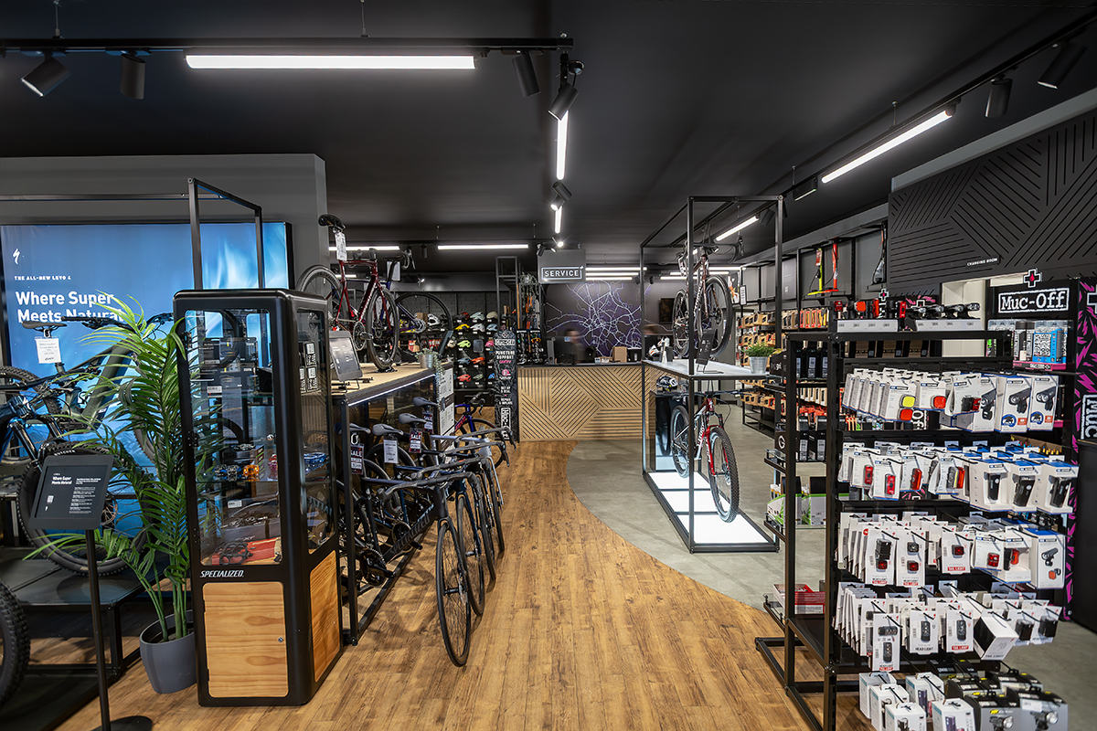Working closely with the store development team we opted for a 3 circuit track system coupled with our linear Ineal fittings for the ambient lighting and Coulis track spots for the feature lighting. This track based solution was quick to install and provided the flexibility the client was looking for, as products could be easily disconnected and relocated to another area within the store should layouts change. Specialized were very pleased with the finished result and we have since supplied the lighting to further outlets in Edinburgh, Guisborough, Plymouth and Chester.