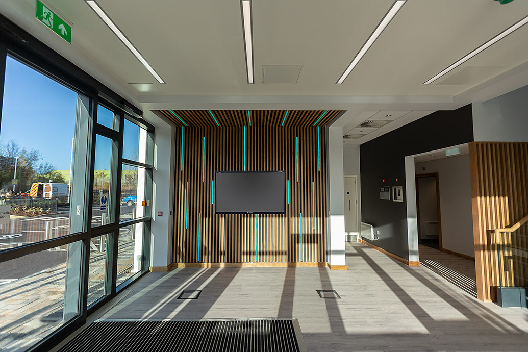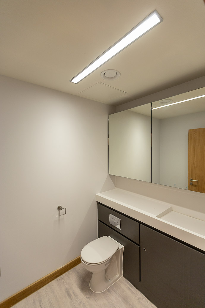Dexeco also provided bespoke solutions for the project and this was facilitated by another of Dextra Group’s subsidiary’s, LEDextra. A Glide Pixel with a special 3D printed bracket to achieve a minimum depth requirement for an oak slatted feature wall was installed.