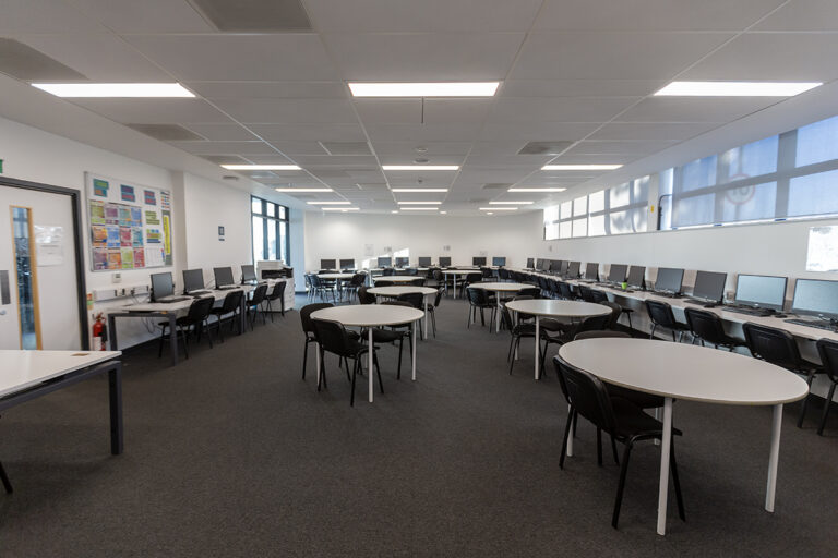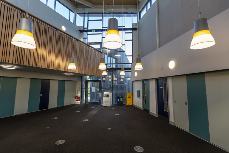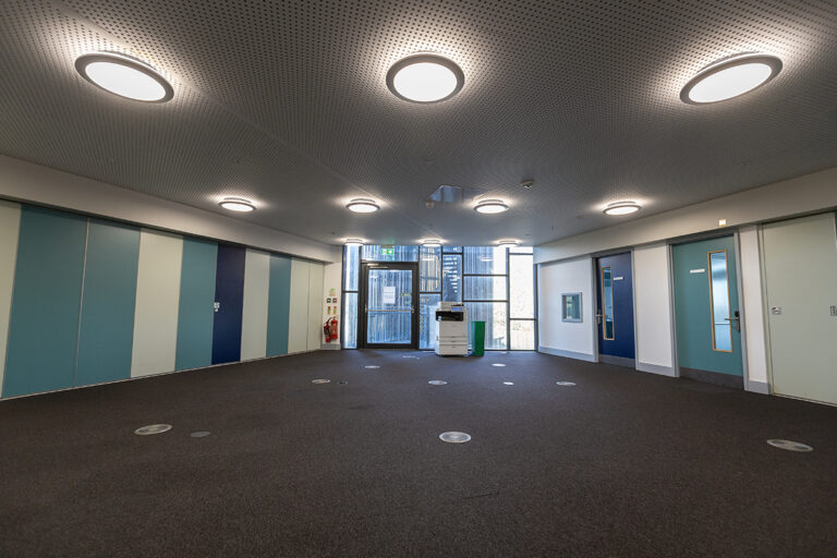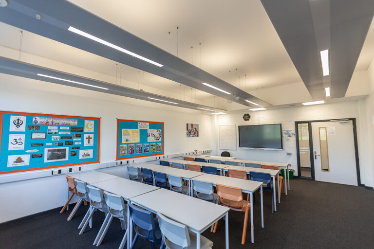 The Bourne Education Trust wanted to upgrade all the lighting at Teddington School, which used outdated lighting technology throughout. Working with contractor Baudelaire Ltd and consultant Synergy, Dextra provided new, efficient LED lighting to the school. Bespoke gear trays were also made to fit the existing raft systems within the classrooms.