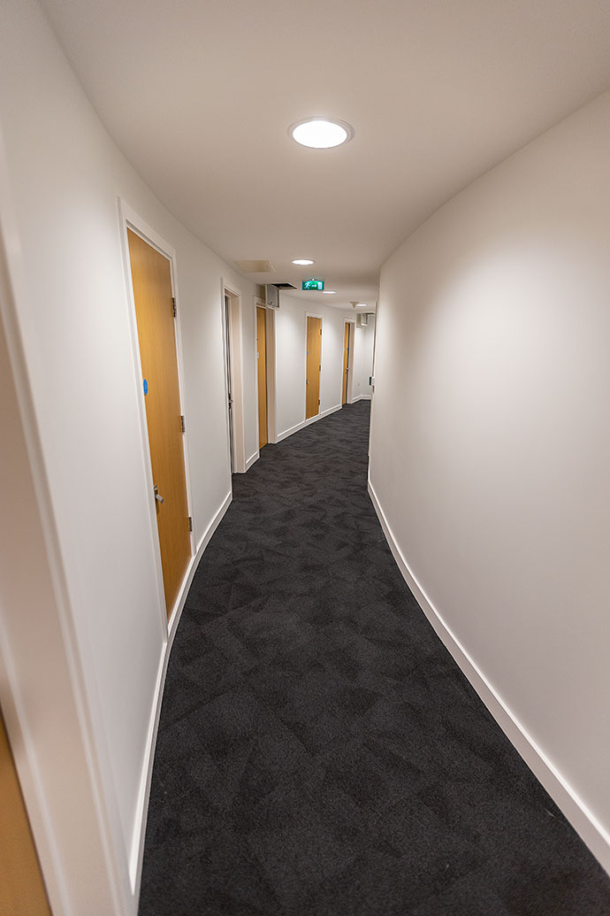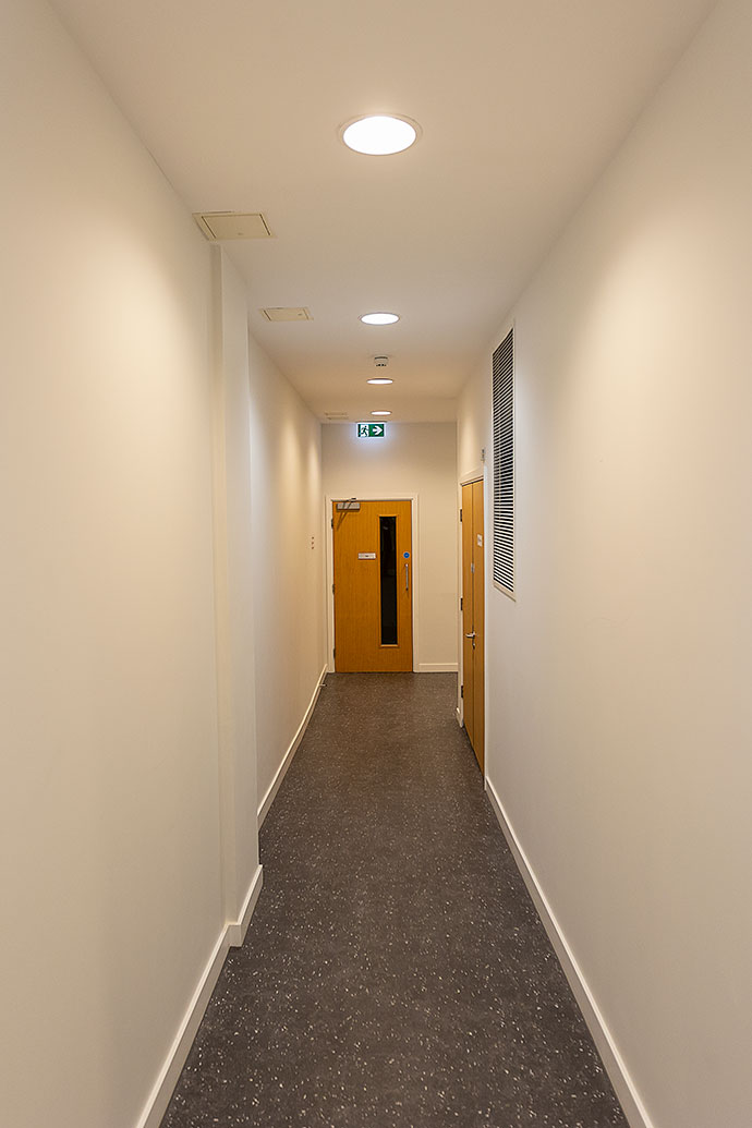 22 Protec LED were used in the main entrance and in the gym to help increase light performance and efficiency. In the communal corridors, 547 BTEC’s were installed to help improve efficiency. The BTEC Downlight is ideal for customers who need a premium quality downlight with high quality LEDs and drivers, excellent efficiency and a five-year warranty, whilst still suiting those on a more restricted budget.