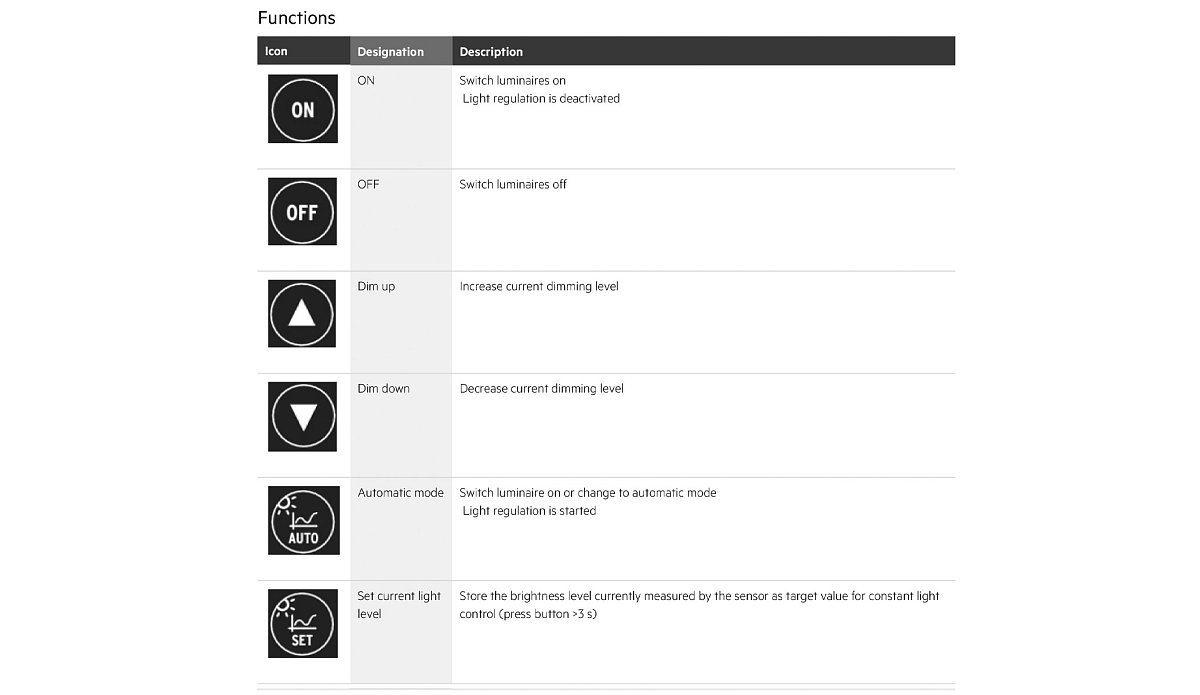 The REA-R44 is a simple user controller for our Reacta 44 sensor range offering the ability to dim and switch luminaires without the functionality to adjust commissioned settings such as time delays and is therefore ideal for a user level controller to temporarily override the lighting to their personal preference.