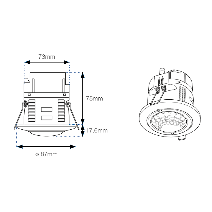 The REAF 7 DR15 LL is a Recessed flush mounted passive infrared occupancy and daylight sensor with DALI or DSI dimming and fixed output relay control.
