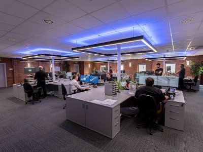 A properly thought out office lighting design can assist in completely transforming the mood, wellbeing and the overall ambience of the space while maintaining or improving the specific lighting requirements for productive working conditions and optimised energy usage.