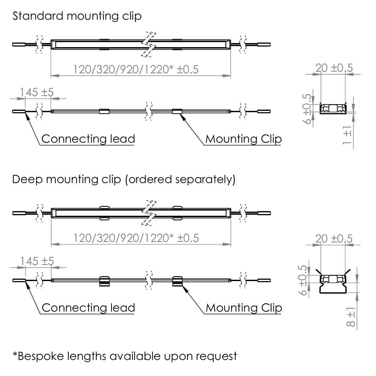- 120mm, 320mm, 920mm, 1220mm lengths