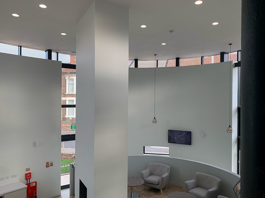 With a spun aluminium housing and injection moulded cable retention, the BTEC Downlight provides a seamless single piece white aluminium reflector and bezel. The BTEC Downlight is available with all common dimming and lithium emergency variants as well as a range of wireless control systems providing localised grouping and control as well as comprehensive wireless solutions allowing both standard and emergency luminaires to be centrally monitored.