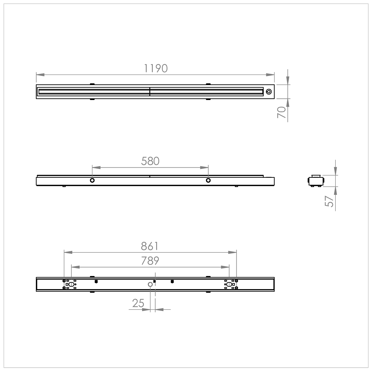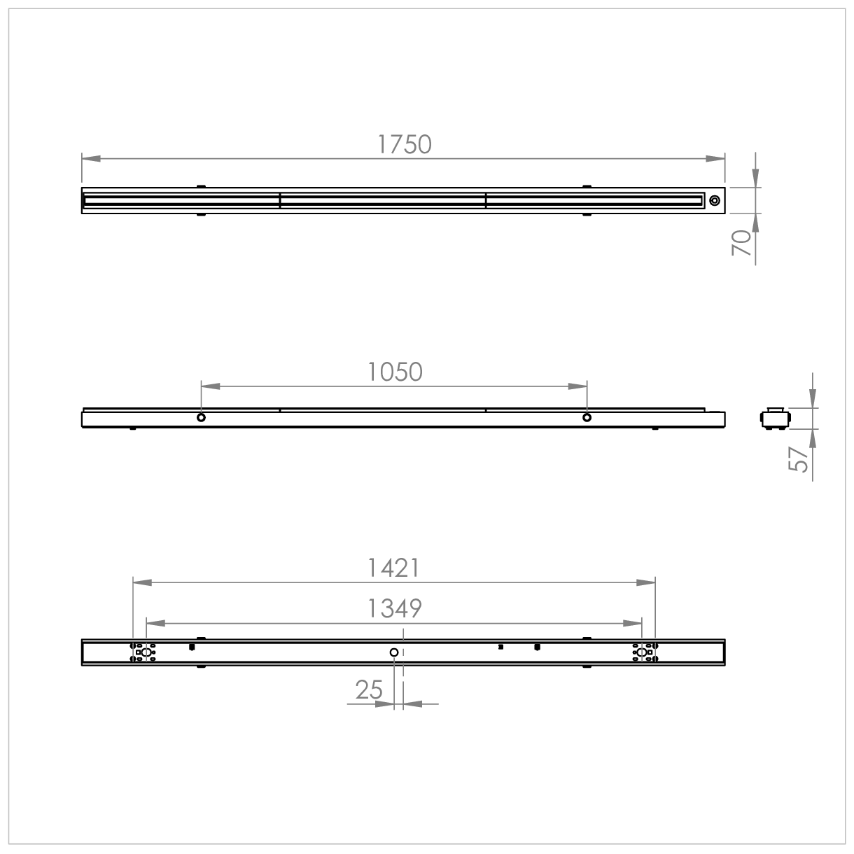 - Finish: Polyester powder painted BS 00E55 matt white 60% gloss