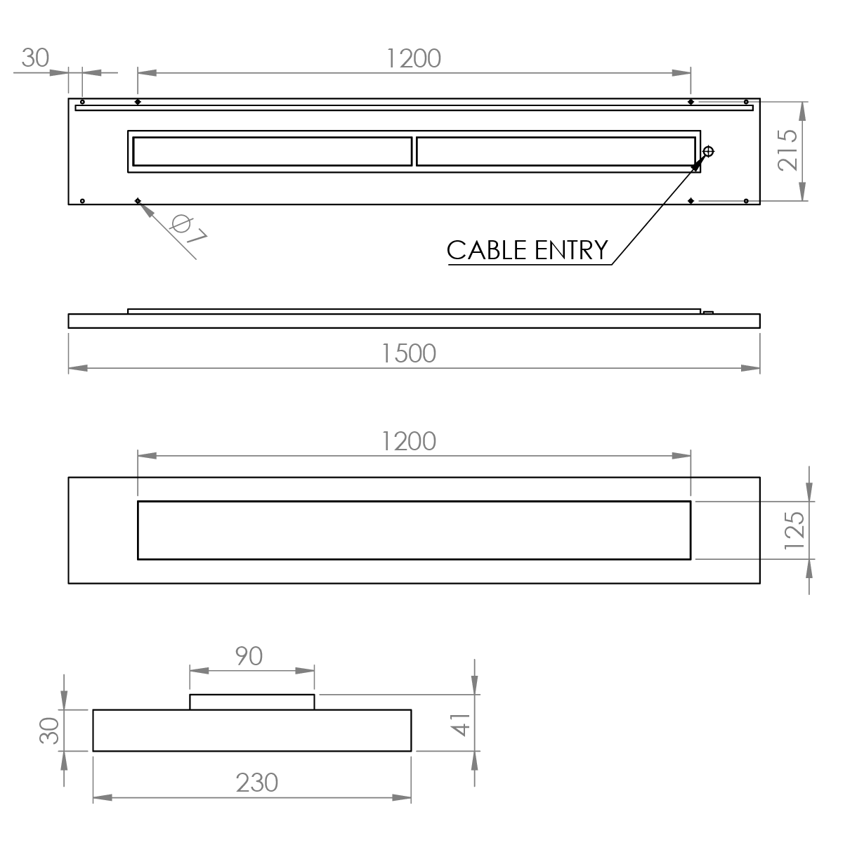 | ELL BLIND 1260 TW | Element Suspended Continuous Run, 1260mm, 6 pole through wire blind unit |