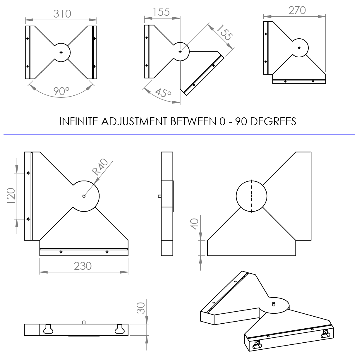 - Available with adjustable corners
