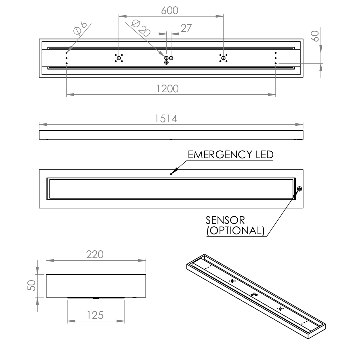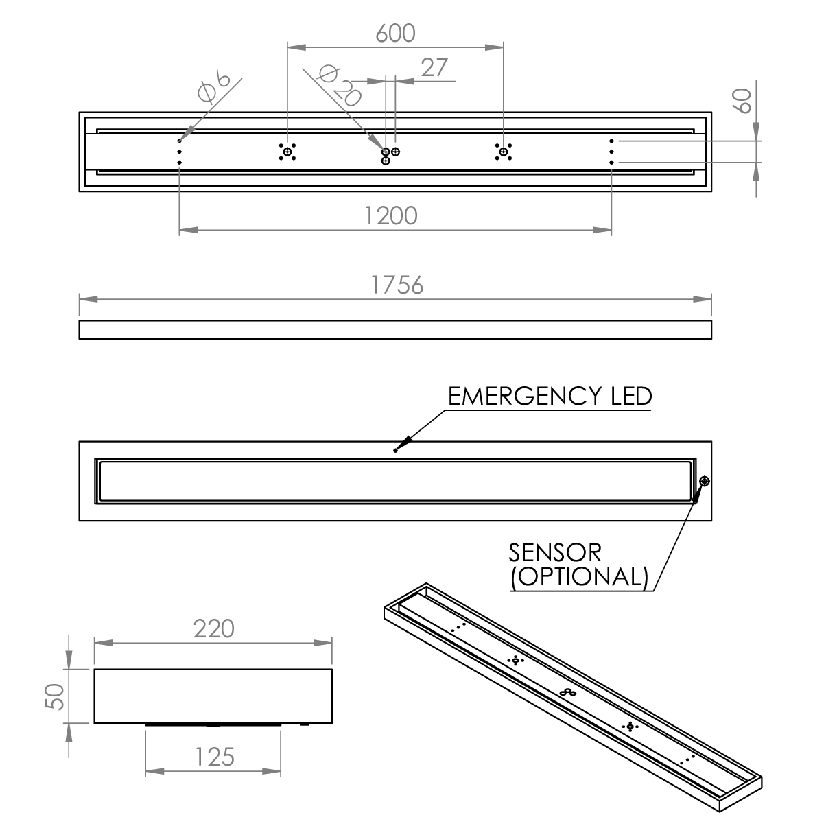 Element Surface Through, 1500mm, 4,270llm, Microprism, Colour 84