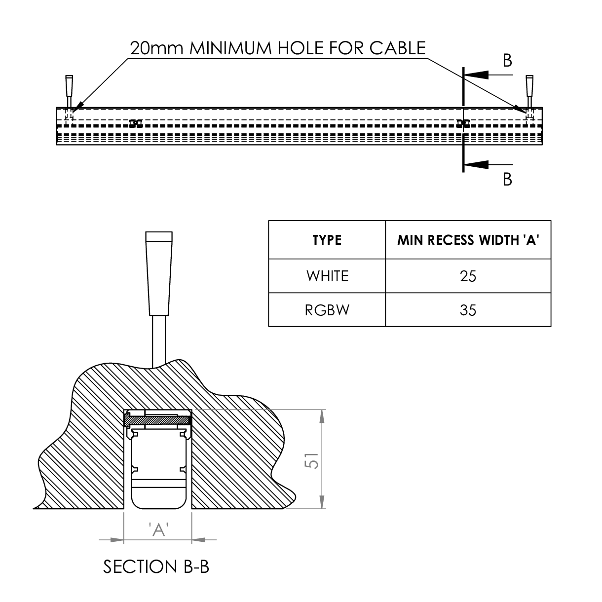 - Extruded aluminium cover with acrylic diffuser