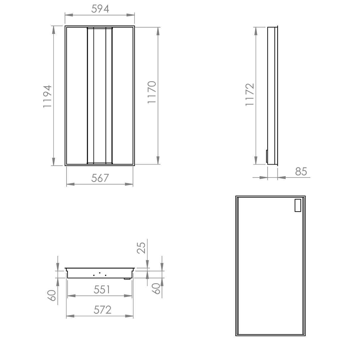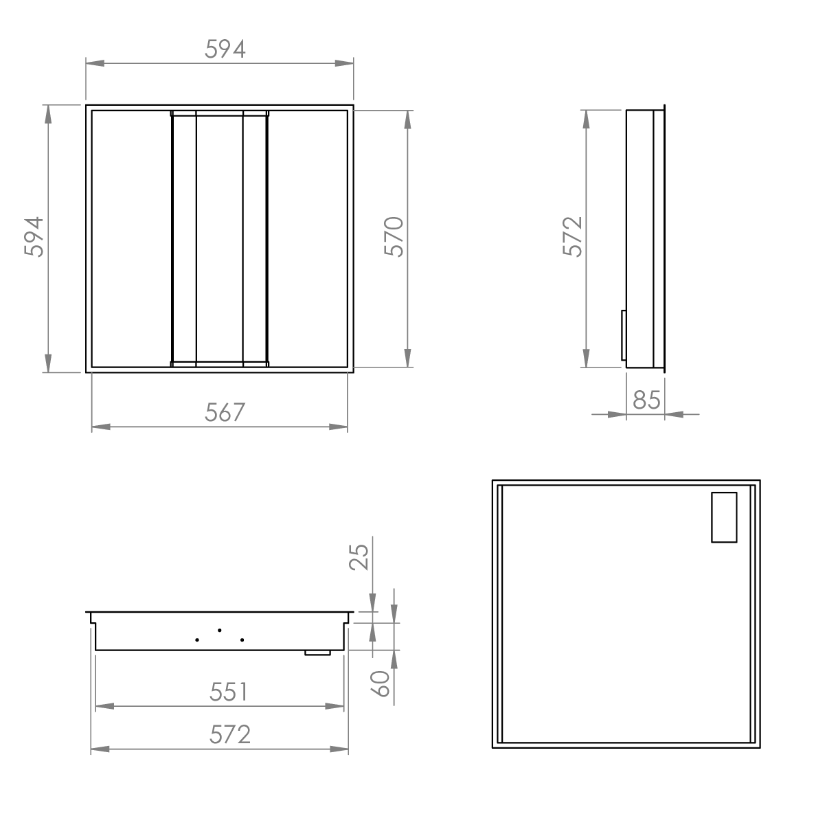 - Finish: Polyester powder painted BS 00E55 matt white 60% gloss