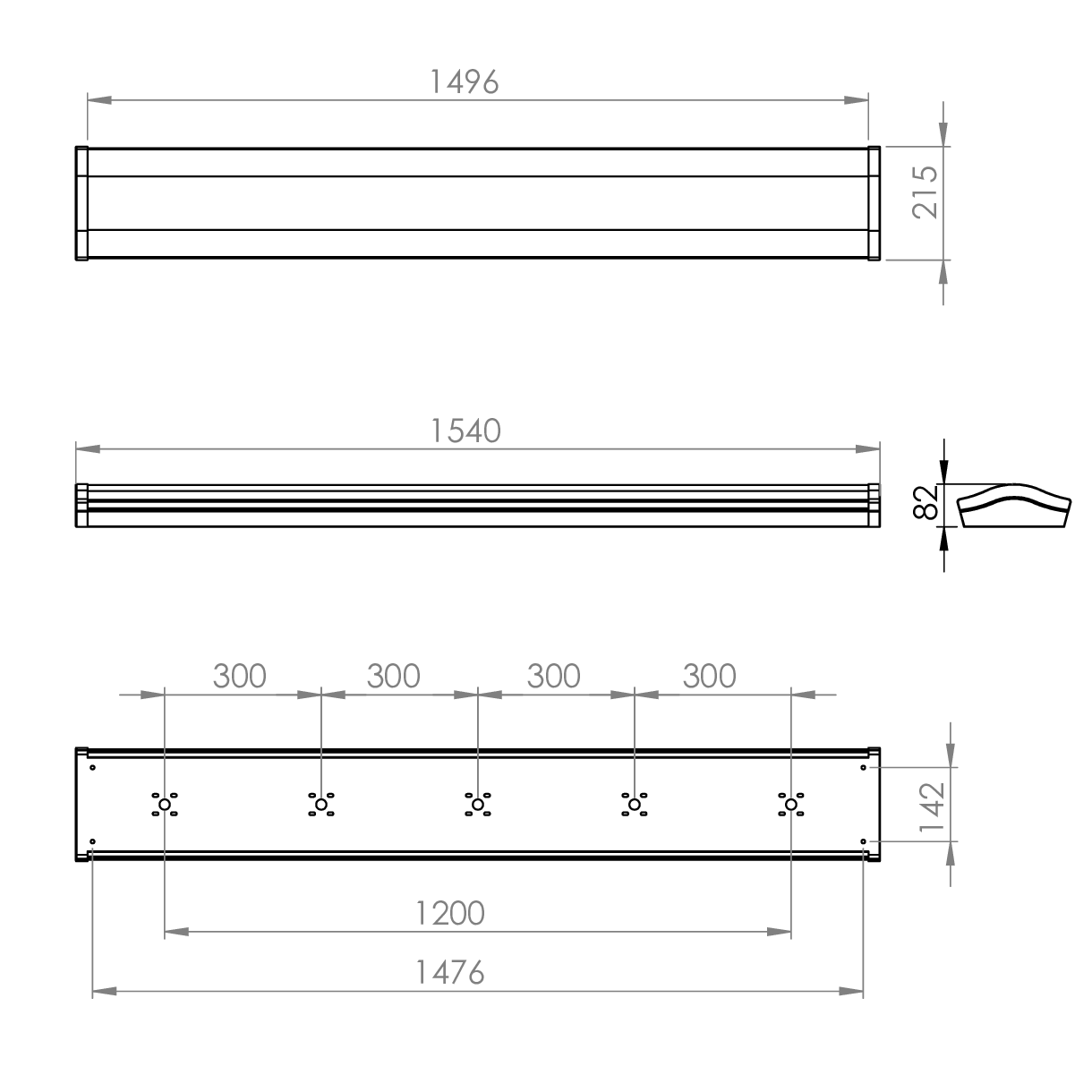 - Finish: Polyester powder painted BS 00E55 matt white 60% gloss