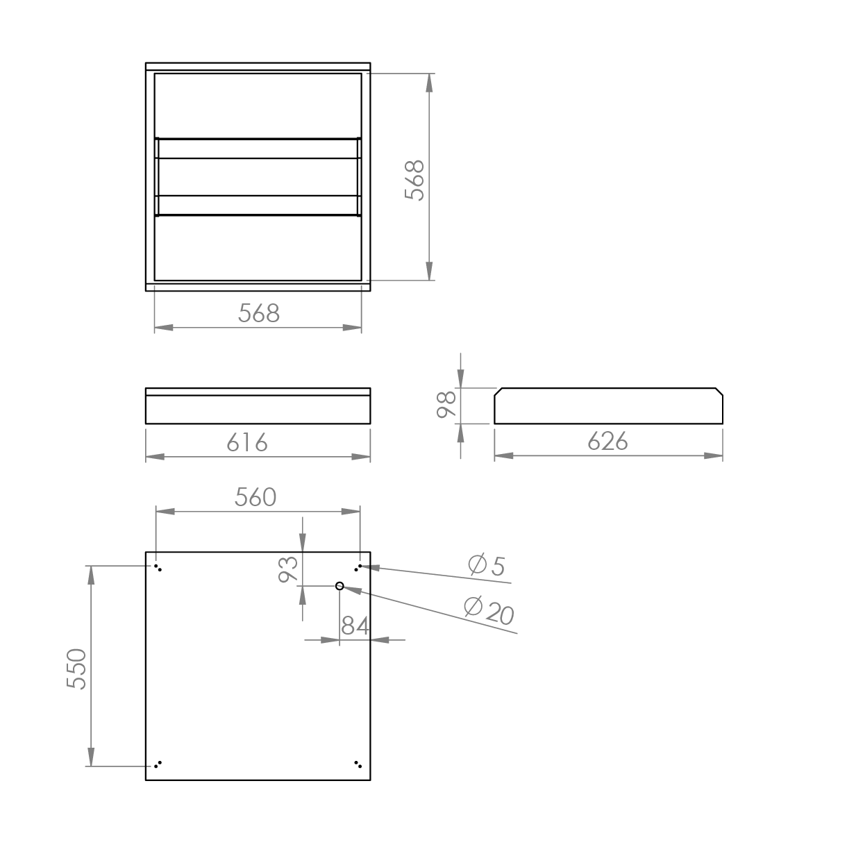 - Finish: Polyester powder painted BS 00E55 matt white 60% gloss