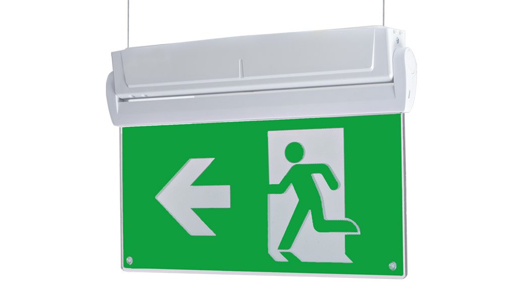 This highly versatile exit sign is designed to suit nearly all emergency exit applications. The standard product is suitable for both suspension and surface mounting, whilst the blade angle can be pivoted through a range of angles when mounting onto sloped ceilings. In addition to this, recessing kits and wall mounting kits are available as optional extras. The HBE3 is supplied with a Lithium battery as standard for extended battery life.
