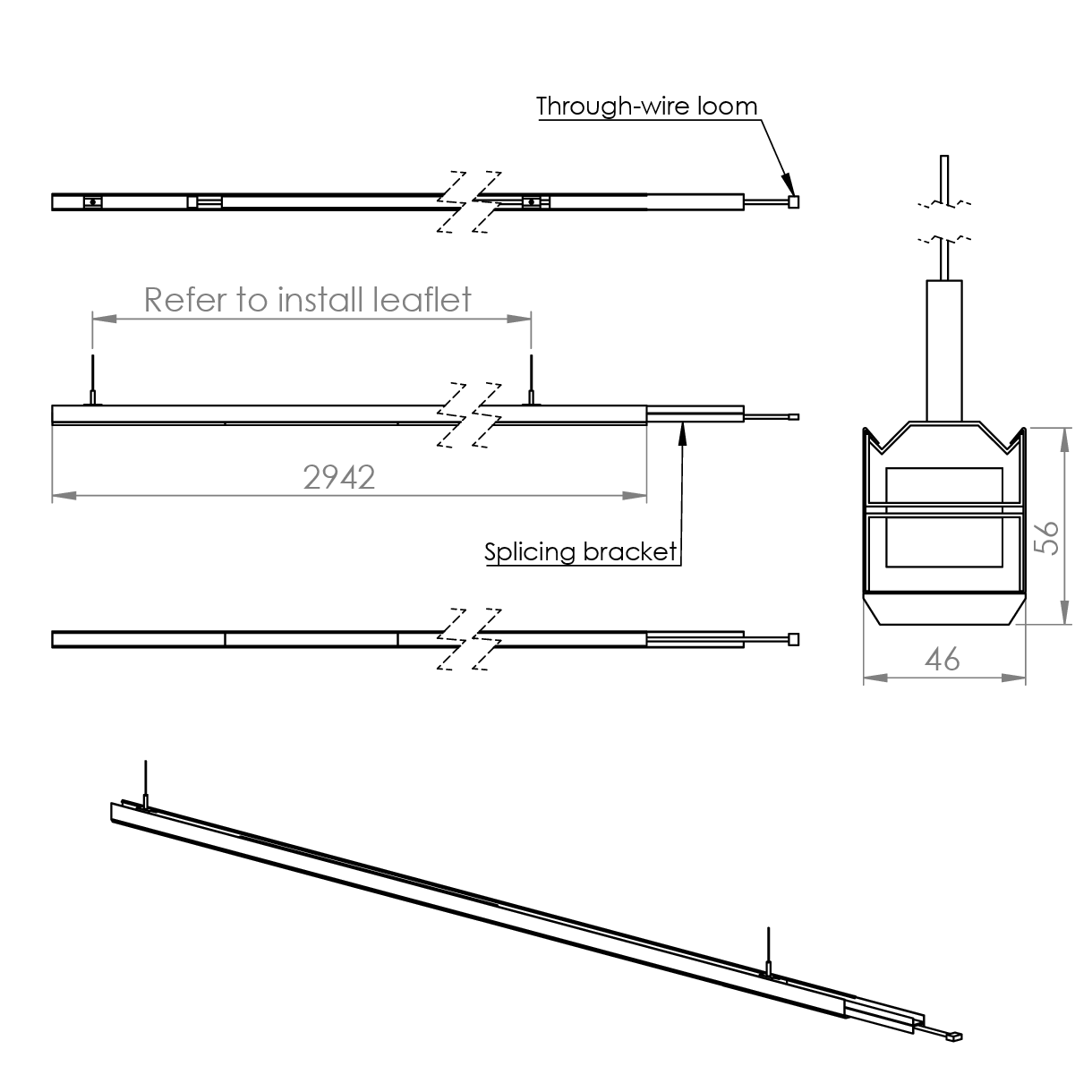 - This system is not suitable for mounting directly to the ceiling, it must be suspended.