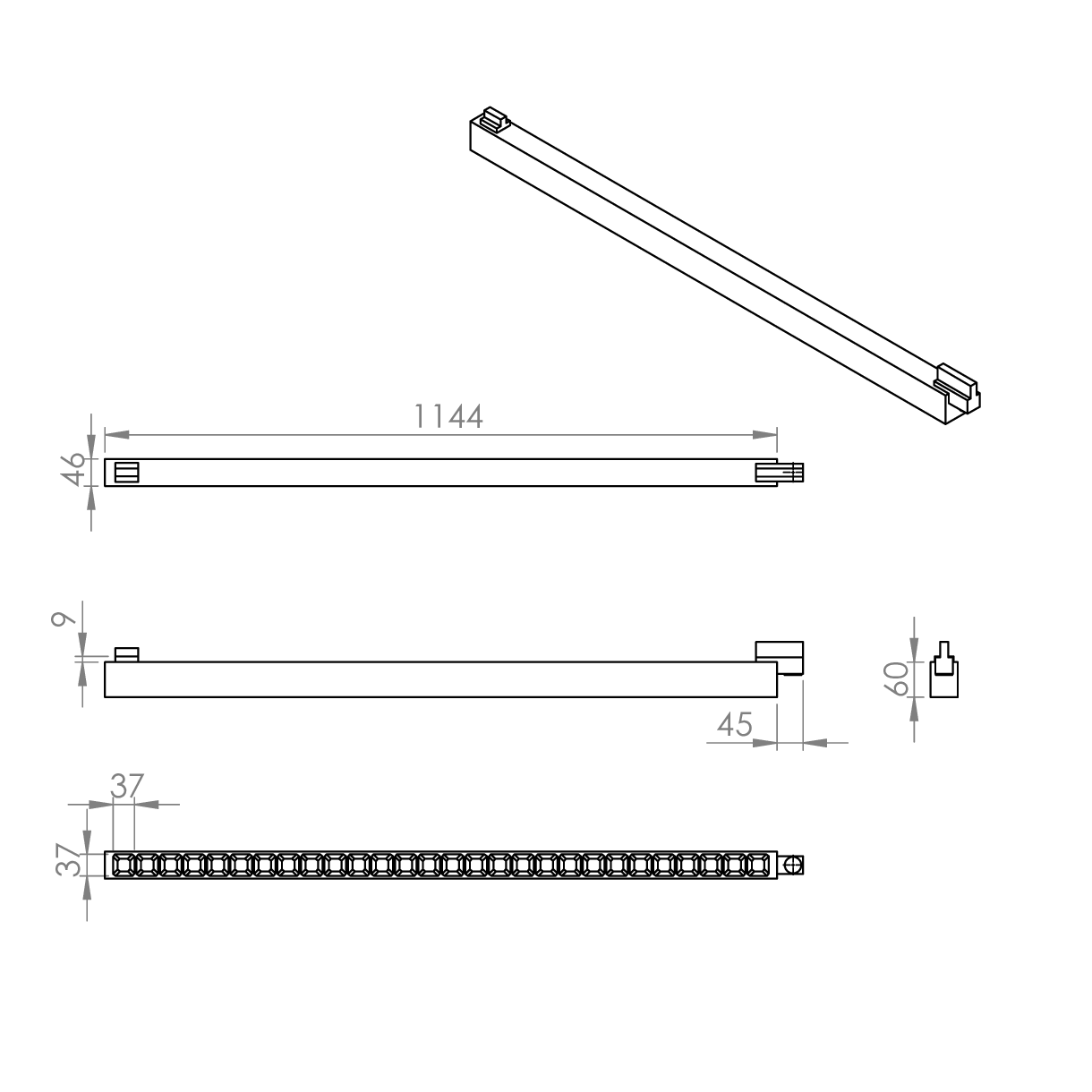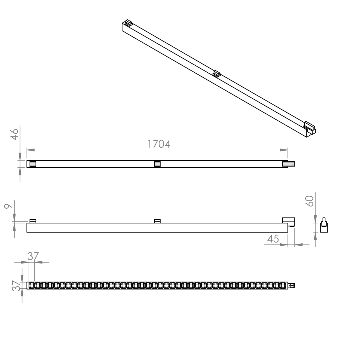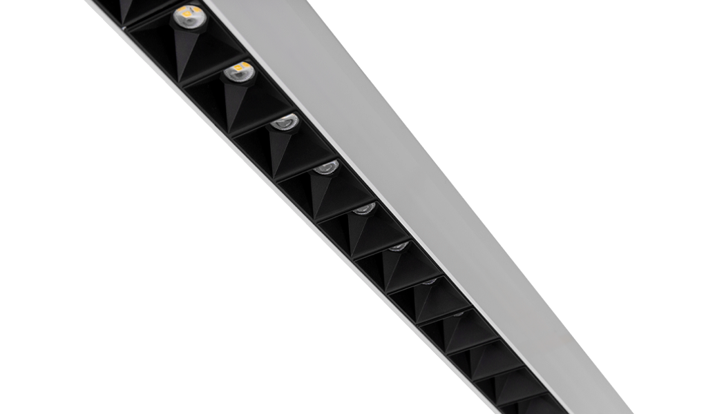 The Ineal 46 family of linear products has been created to offer retailers a discreet low profile solution for their ambient store lighting. Designed to mount directly onto three circuit or DALI lighting track the high quality extruded aluminium body measures just 46mm in width and is offered in matt black or white as standard. This version comes with the choice of a black, white or copper injection moulded cellular baffle with a custom lens optic which provides maximum efficiency, consistent optical performance and an excellent glare control of UGR 16. The flexibility of the track adaptor allows you to re-position the fittings quickly and simply should there be any changes to the store layout further down the line. This unique product range is also available with integral emergency and offered in a wide range of lumen outputs across three luminaire lengths.