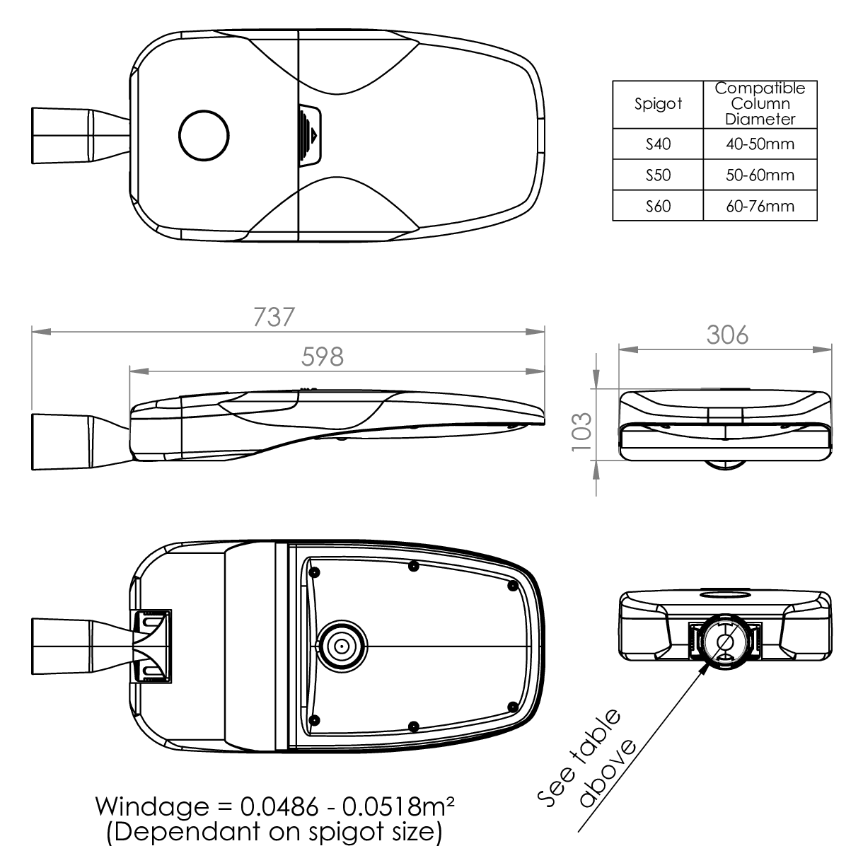 | S60 | 60-76mm Spigot |