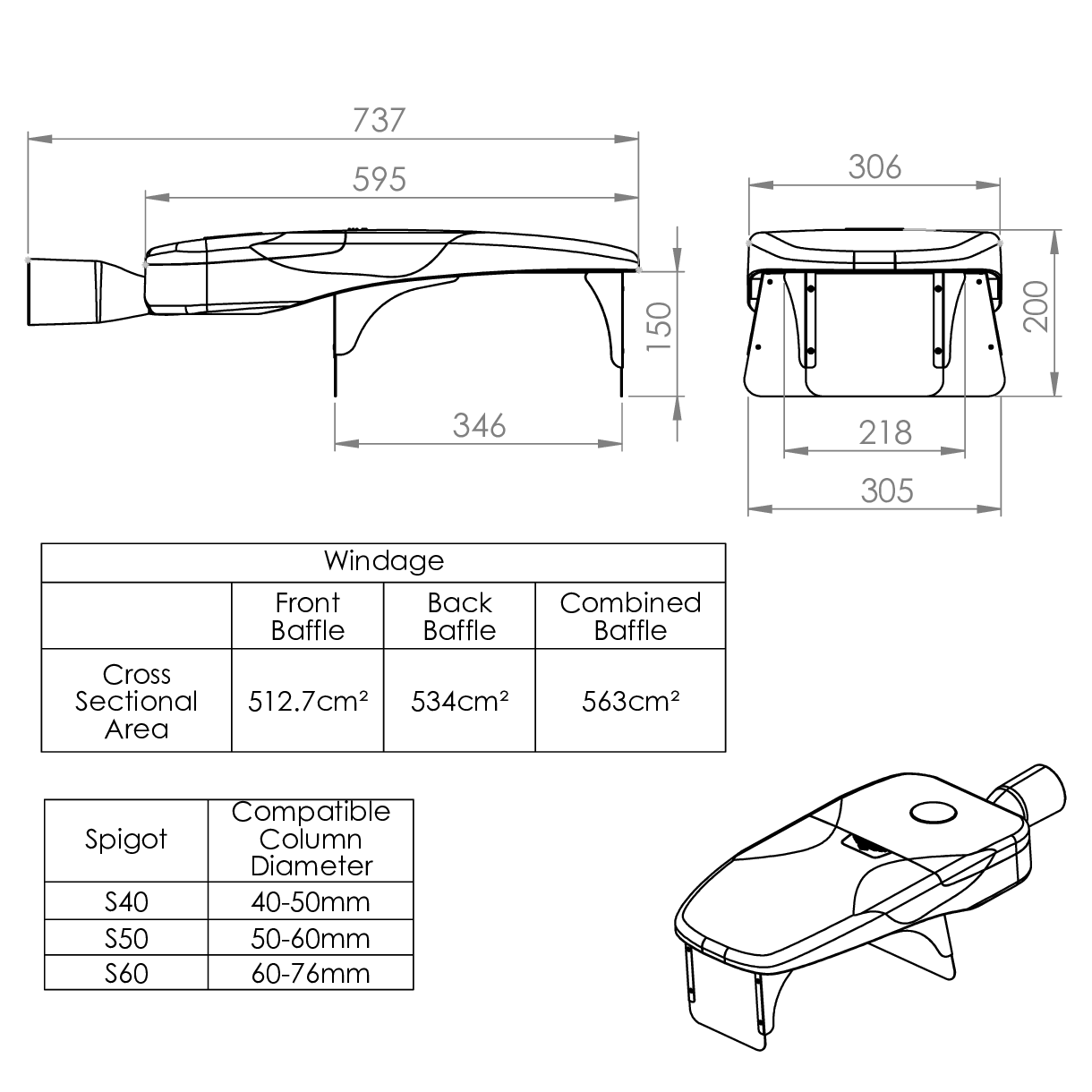 - Available with 40-50mm, 50-60mm or 60-76mm spigot