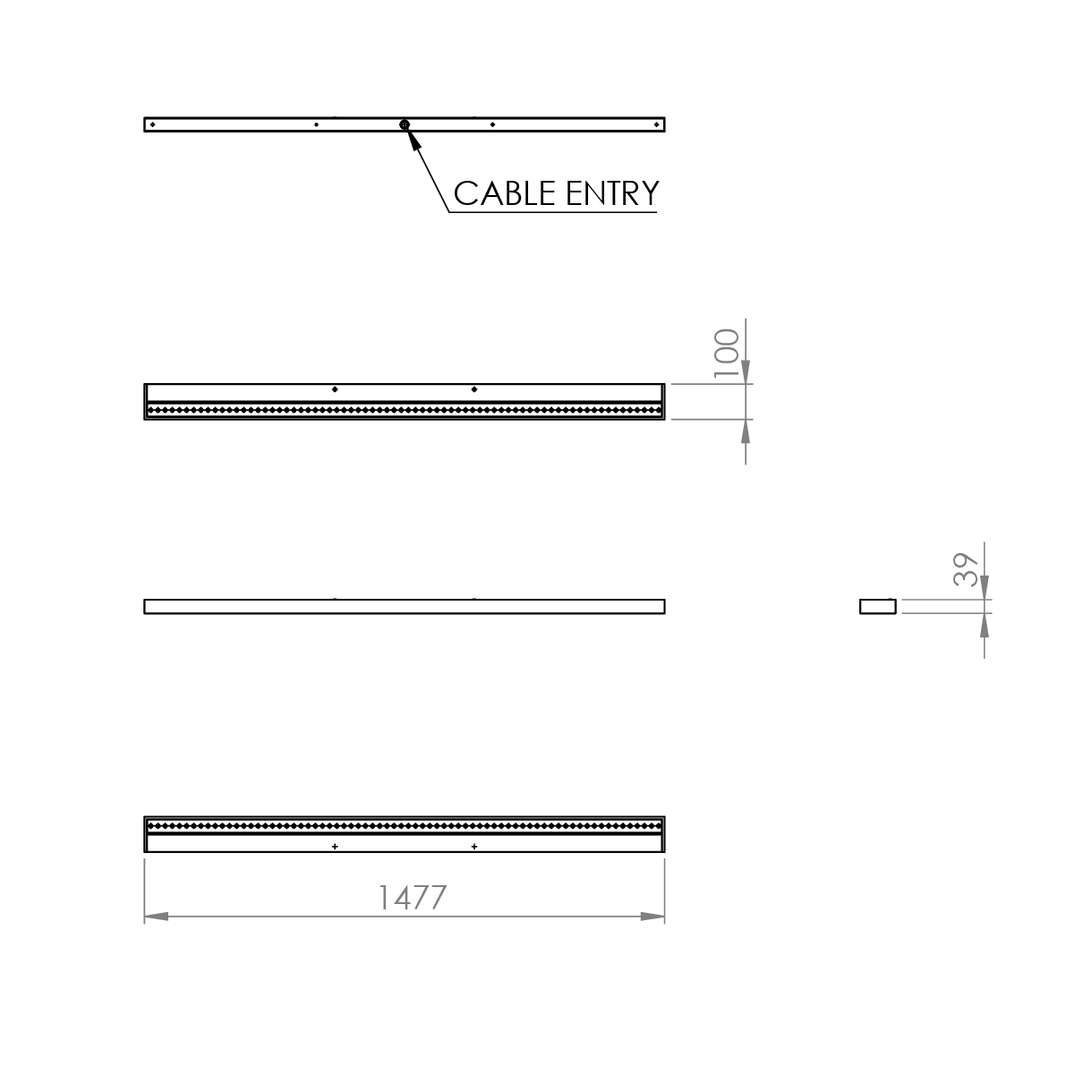 - Finish: Polyester powder painted RAL 9006 matt grey