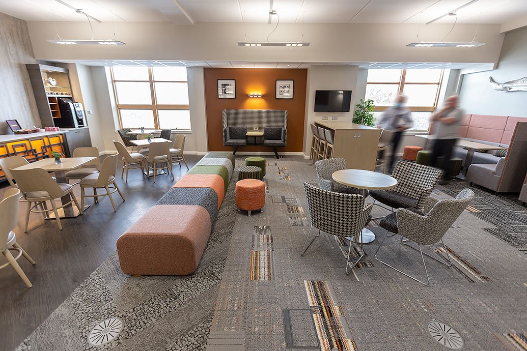 The luminaire housing can be specified in either black or white finishes whilst the downward optic cell surrounds are available in a range of colours including neutral tones such as opal and black through to coloured options ideal for matching corporate themes such as red, orange, green and blue.